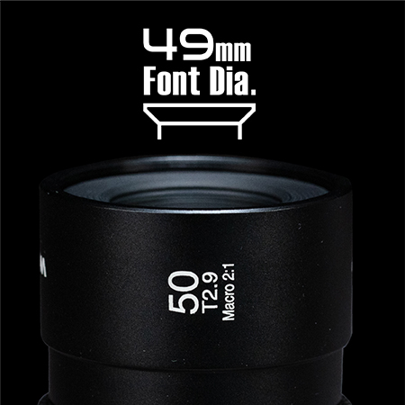 Filettatura da 49 mm per l`utilizzo di filtri standard a vite.